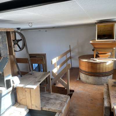 Ursprünglich wurde die Steinmühle mit Wasser aus dem Maseiner Bach angetrieben, bis dann 1944 ein Elektromotor das Wasserrad ersetzte. Gleich neben der Steinmühle stehen zwei weitere geschichtsträchtige Objekte: eine nostalgische Walzenmühle, die vor allem für die Herstellung von Tierfutter verwendet wurde, sowie eine Getreidereinigungsmaschine. Die Vision von Marcel Bühler und Werner Graf: Mit der alten Steinmühle soll über kurz oder lang lokal produziertes Getreide gemahlen werden, das im Maseiner Backhaus oder auch in privaten Haushalten oder Bäckereien zu Brot verarbeitet wird. Ob das Bedürfnis einer solchen Dienstleistung vorhanden sei, werde sich dann weisen. "Einen Gewinn wird man wohl mit der traditionellen Produktion von Mehl kaum erzielen, sodass man weiterhin auf die Mithilfe von Liebhaberinnen und -liebhaber der Mühle angewiesen ist, die ihren Job mehr als ‘professionelles Hobby’ denn als Broterwerb verstehen", meint Marcel Bühler mit einem Augenzwinkern.