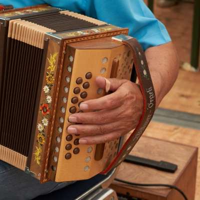 Mit den Grischuna Oergeler. Sie wurden vom Schwyzerörgeler Niklaus Jäger im Jahre 2007 gegründet. Reservation erwünscht.