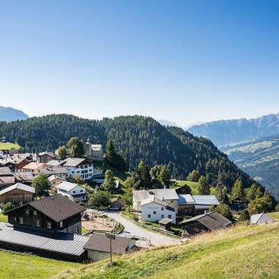 Von Feldis aus geht's mit der Sesselbahn nach Mutta, wo unsere Wanderung zur Feldiser Alp startet. Unterwegs weiss Andrea Raguth Tscharner uns einiges über Feldis und die Umgebung zu erzählen.
