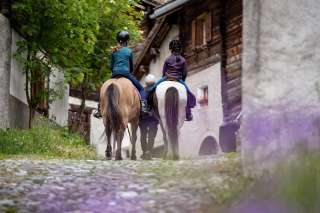 Auf den Isländern von Elisabeth Rüedi lässt sich das Rheinwald einmal ganz anders erkunden. Die Vierbeiner führen euch auf alten Pfaden durch die Gassen des Splügner Oberdorfs, über die Felder und entlang des Hinterrheins.