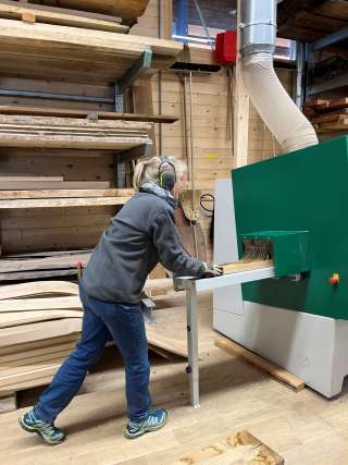 - Zuschnitt, Vorbereitung und Verleimen der Tischplatten oder Bettplanken