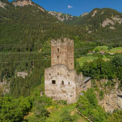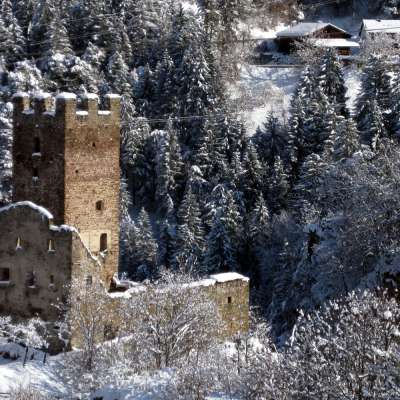 Campi liegt am Eingang zur Schinschlucht und ist öffentlich zugänglich. Erreichbar zu Fuss in ca. 30 min ab Burgenweg Domleschg.