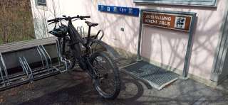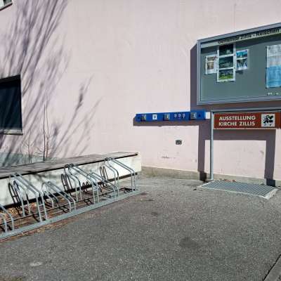 Die Ladestation befindet sich bei der Gemeindekanzlei Zillis an der linken Hauswand bei Fahradständer.