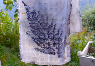 Wie jedes Jahr heizt Esther Grischott aus Pignia für den Ecoprint-Workshop wieder den grossen Dirty Pot - ein alter Waschzuber - mit Feuer ein. Während den Wartezeiten experimentieren wir mit weiteren Techniken, wie Cyanotype, Hapa Zome und Flower Bundle Dye. Ecoprint (auch Pflanzendruck oder Kontaktfärben) ist ein umweltfreundliches Verfahren, bei dem natürliche Farbstoffe von Blättern, Blüten und anderen Pflanzenteilen durch Dampf oder Hitze direkt auf Stoffe (Naturfasern wie Seide, Wolle) oder Papier übertragen werden. Cyanotype (Griechisch für "Blaudruck") auch bekannt als Sonnendruck, ist ein einfaches fotografisches Verfahren, das mit dem Licht der Sonne bzw. UV-Licht arbeitet. Das alte fotografische Druckverfahren erzeugt Bilder in bläulichen Farbtönen. Hapa Zome (Japanisch für „Blattfärbung“) ist eine kreative Technik, bei der Blüten und Blätter durch Hämmern auf Stoff oder Papier übertragen werden, um natürliche Pigmente direkt ins Material zu drucken. Flower Bundle Dye (Bündelfärben) ist eine natürliche Färbetechnik, bei der Blüten, Blätter und Pflanzenteile direkt auf Stoff platziert, fest eingerollt (gebündelt) und anschließend gedämpft werden. Durch Hitze und Feuchtigkeit übertragen sich die Pigmente der Pflanzen auf das Textil.