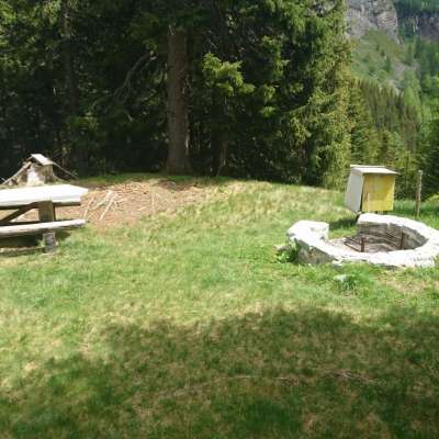 Die Feuerstelle befindet sich direkt nach der Abzweigung Valle di Lei auf dem Wanderweg zwischen Innerferrera und Campsut.