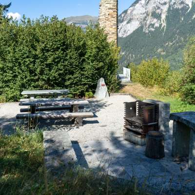 Die Feuerstelle ist von Clugin aus über einen Wanderweg in gut 30 Minuten problemlos erreichbar. Folgen Sie der Wanderweg Signalisation Richtung "Ruina Cagliatscha".