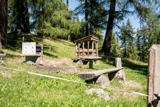 Die Feuerstelle befindet sich wenige Minuten vom Parkplatz der Sesselbahn Feldis-Mutta oder der Bushaltestelle Scheid, Plazza entfernt.