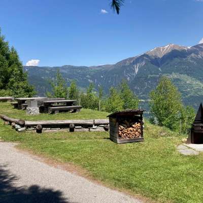 Die Feuerstelle Crusch befindet sich oberhalb vom Dorf Präz. Eine schöne Aussicht hat man auf das Domleschg und die umliegenden Berge.