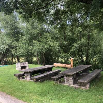 Die idyllische Feuerstelle liegt direkt am renaturierten Dorfbach zwischen Cresta und Masein.