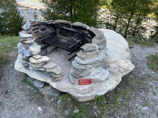 Das Rauschen der beiden tosenden Gewässer ist somit ein steter Begleiter und verleiht dem Cervelat oder dem Quorn-Schnitzel eine ganz besondere Geschmacksnote. Nebst einem kleinen Tisch und Holzlager besticht diese Feuerstelle ganz besonders durch die beiden Flüsse. Ab Hinterrhein sind es ca. 1.2 km und ab Nufenen 3.5km zu Fuss bis zur Feuerstelle.