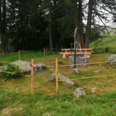 Die Feuerstelle befindet sich direkt an der Strasse zwischen Mutten und Obermutten sowie am Weg der Schatzsuche "Huria Fängge".