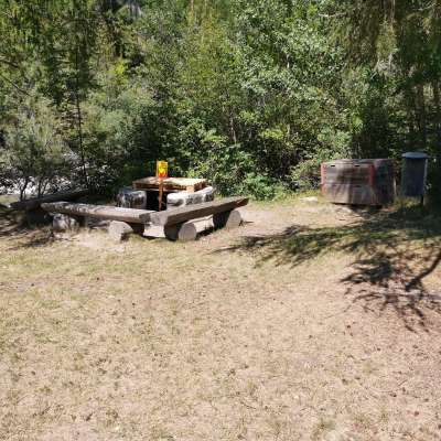 Der Platz ist einfach erreichbar neben dem Hinterrhein. Dieser ist allerdings nicht direkt zugänglich, da zwischen Rhein und Feuerstelle eine steile Böschung von zirka fünf Metern liegt. Trotzdem hat man die eindrucksvolle Geräuschkulisse des reissenden Stroms als steten Begleiter. Es hat einige Bäume rund herum und die Feuerstelle ist durch den Tag eher sonnig. Gegen Abend liegt sie jedoch in einem angenehmen Schatten und eignet sich, je nach Tageszeit, auch an warmen Sommertagen.