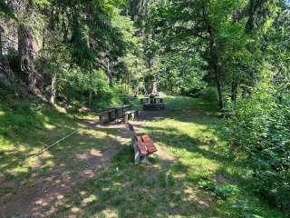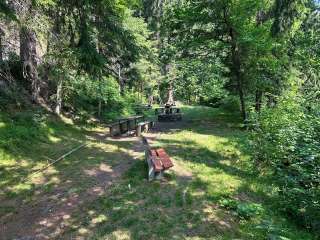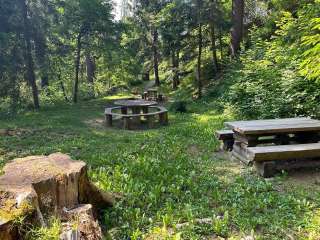Die Feuerstelle liegt geschützt im Wald, direkt an einem kleinen See und Bächlein.