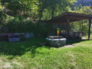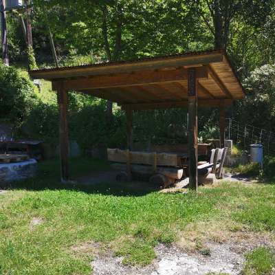 Die Feuerstelle befindet sich an einer ruhigen aber dennoch leicht erreichbaren Lage. Sie verfügt über einen überdachten Bereich mit Bänken und einem Tisch.
