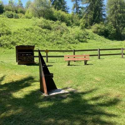 Die Feuerstelle Schiessstand Tartar liegt an einem kleinen Teich und einem Bächlein. Sie ist gut geschützt und hat einen Unterstand.