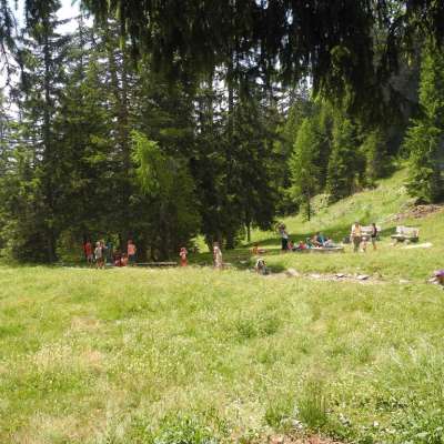 Die Feuerstelle Summaprada liegt auf einer Rasenfläche, auf der ein kleines Bächlein hindurch fliesst (Baden erlaubt). Sie bietet Kindern die Möglichkeit, sich auf der Wiese auszutoben und Spiele zu spielen.