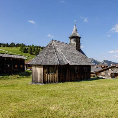 Die denkmalgeschütze Kirche in Obermutten ist der einzige Sakralbau der Schweiz, der gänzlich aus Holz besteht. Die umliegenden Lärchenwälder boten dazu den Baustoff. Zudem ist sie die höchstgelegene Holzkirche in Europa.