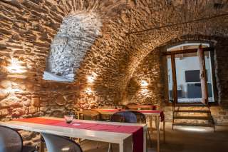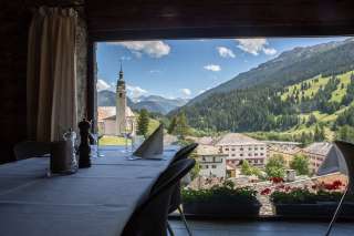 Sein Inneres strahlt viel Romantik aus und das Panorama-Restaurant bietet einen wunderbaren Blick über die Splügner Steindächer. Ein idealer Ort für Familienfeste und sonstige Feiern. Ebenfalls zur Ausstattung des Hotel Alte Herberge Weiss Kreuz gehört das Restaurant in alten Gewölben, die Gartenterrasse sowie die Gwölb-Bar.