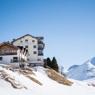 Restaurant mit gepflegter Küche, separates Arven-Stübli und einladende Sonnenterrasse mit Blick auf den Capetta-Wald.