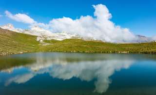 Oberhalb der SAC Cufercalhütte hoch über Sufers liegt der Lai da Calandari auf 2470 m ü.M.