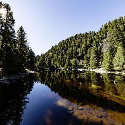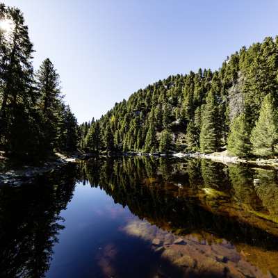 Oberhalb von Andeer liegt der Lai Ner (romanisch für schwarzer See). Der Bergsee liegt inmitten eines Wäldchens.