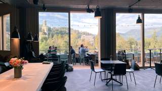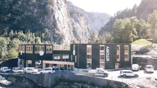 Die Lounge ist das Chamäleon von der Story Thusis und verwandelt sich vom Frühstücksbuffet über den Info-Desk bis hin zur Bar.