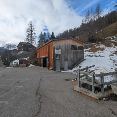 Die öffentliche Toilette befindet sich auf dem Parkplatz in Mathon gleich gegenüber des Restaurants Muntsulej.