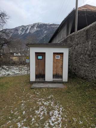Am Spielplatz in Andeer gibt es eine öffentliche Toilette, die je nach Wetterlage etwa von April bis Oktober geöffnet ist.