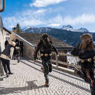 Die Saumrolle, ein Ledergurt mit kugelförmigen Schellen besetzt, die die «Maschgärä» (Masken) um die Hüfte gebunden haben, verrät sie und gibt den Opfern einen kleinen Vorsprung, der meistens nicht genügt. Im ganzen Dorf laufen dann die Mädchen und Kinder mit russschwarzen Gesichtern herum, als wären sie Schornsteinfeger von Beruf.