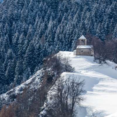 Die denkmalgeschütze reformierte Kirche in Casti im Südosten des Dorfes steht auf einem vorgelagerten Felsen.