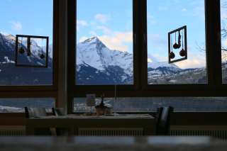 Das Restaurant mit Blick auf den Piz Beverin und den Heinzenberg.
