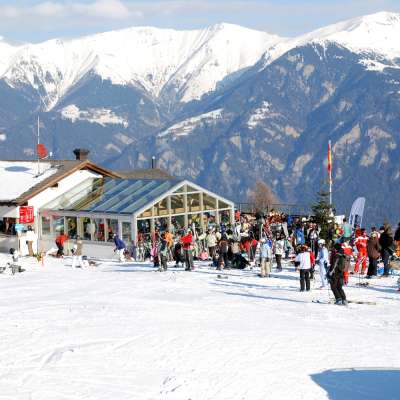 Das Restaurant befindet sich direkt bei der Talstation Oberurmein vom Skigebiet Tschappina neben der Schirmbar.