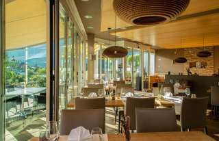 Die schöne Terrasse und die einzigartige Lounge laden zum Genuss eines feinen Imbisses, eines speziellen Desserts oder zum romantischen Open-Air-Dinner mit herrlichem Blick auf Burgen sowie den Heinzenberg und den Piz Beverin. Das Restaurant mit Aussicht bietet den perfekten Rahmen für ein Essen im Familien- und Freundeskreis, festliche Anlässe werden im mit viel Charme gestalteten Saal zum unvergesslichen Erlebnis. Kulinarischer Schwerpunkt der Speisekarte sind nebst bewährten Klassikern und saisonalen Gerichten hochwertige regionale Fleischspezialitäten – zubereitet in einem eigens aus Spanien importierten „Josper“-Holzkohlegrill, der den Speisen einzigartige und unvergleichliche Röstaromen entlockt.