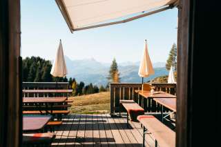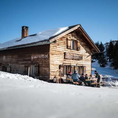 In 15 Minuten zu Fuss von der Bergstation des Sesselliftes Feldis-Mutta erreicht ihr unser Restaurant mit bedienter Sonnenterrasse, holzbeheiztem Stübli und Herberge.