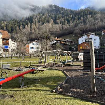 Der Spielplatz befindet sich beim Schulhaus. Die Bushaltestelle Scharans, Dorf ist 2 Gehminuten vom Spielplatz entfernt.