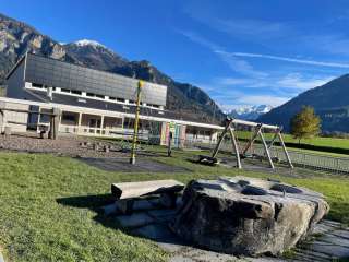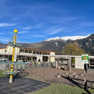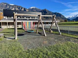 Der Spielplatz beim Schulhaus Quadra in Cazis verfügt über verschiedene Spielgeräte und bietet Kindern zahlreiche Möglichkeiten, um sich auszutoben.