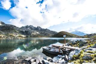 Am oberen Surettasee auf 2272 m liegt die Seehütte, die für eine Übernachtung gebucht werden kann und ein Ruderboot, welches für eine Seerunde gerne benutzt werden darf. Die stille Atmosphäre ist wohltuend und wenn sich dann die umliegenden Bergspitzen vom Seehorn bis zum Surettahorn im See spiegeln, wird der Ausflug zu einem unvergesslichen Erlebnis.