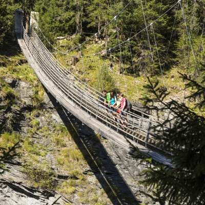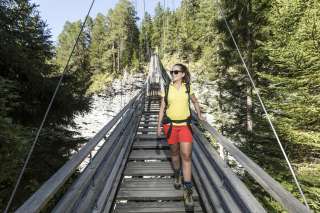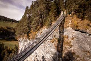 Das grösste und wildeste dieser Tobel wird seit 2005 vom Traversinersteg II überspannt. Der Zweite Traversinersteg wurde 2005 erbaut und ersetzt den 1996 erstellten ersten Traversinersteg, der weiter hinten im Tobel stand und von einem Steinschlag zerstört wurde. Die Brücke ist als vorgespanntes Seilfachwerk mit natürlichen Pylonen und einem schrägen Gehweg angelegt, einer hängenden Treppe mit einer horizontalen Spannweite von 56 m und einer Höhendifferenz von 22 m. Das Wohlbefinden der Wanderer und ihr subjektives Sicherheitsgefühl bezüglich Tiefblick und Schwingungen auf der 70 m über dem Bachbett hängenden Treppe war eine entscheidende Planungsaufgabe.