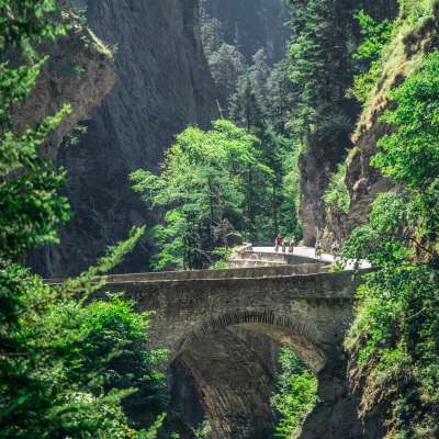 Sowohl der römische Weg als auch die spätere Hauptroute von 1472 führten im Zentrum der Viamala-Schlucht einst auf der Westseite durch den engsten Schluchtabschnitt.