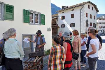 Erwin Dirnberger bietet neben Führungen in der CasaStorica – dem Haus voller Geschichte in Andeer – auch Vorträge, Vorführungen, szenische Rahmenauftritte und Intermezzi in der Destination Viamala an.