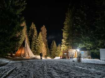 Die Schlittelbar inkl. Tipi in einer idyllischen Waldlichtung am Schamserberg eignet sich ideal für eine Schulreise.