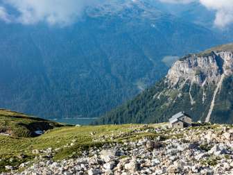 Die Cufercalhütte liegt auf einer Weideterrasse oberhalb Sufers bzw. Andeer auf 2'385 m ü.M. am Südfuss des Piz Calandari.